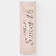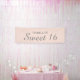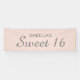 Élégante bannière rose pâle Sweet 16 avec script gris Personnalisée avec le nom de l'invité d'honneur. Choisissez parmi une variété de tailles. Commandez à l'intérieur ou à l'extérieur.