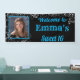 Bannière élégante et féminine avec parties scintillant argentée scintillante, coins tourbillons décoratifs et confettis pétillants. Personnalisez pour utiliser pour la Graduation, Bat mitzvah, Quinceanera, Anniversaire, et Fiançailles, juste changer le texte. Tous les éléments de conception peuvent être déplacés et redimensionnés pour s'adapter à la plupart des tailles de bannière. Le cadre peut être dimensionné pour correspondre à votre photo. Arrière - plan noir, texte et couleur de cadre peuvent être changés à votre goût.