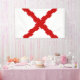Ce dessin présente la Croix de Bourgogne (en espagnol, "Cruz de Borgoña"), également connue sous le nom de Croix de Saint-André (en espagnol, "Cruz de San Andrés"), qui fut utilisée pour la première fois au XVe siècle comme emblème des ducs valois de Bourgogne, qui dirigeaient une grande partie de l'est de la France et des Pays Bas. Les Pays-Bas bourguignons ont été hérités par les Habsbourg, qui ont adopté le drapeau ; au XVIIIe siècle, il a servi d'enseigne navale et de drapeau de bataille de l'Empire espagnol.