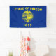 Ce dessin est orné du drapeau de l'État de l'Oregon, qui se trouve dans la région Pacifique Nord-Ouest sur la côte ouest des États-Unis. L'état est bordé par l'Idaho, l'état de Washington, la Californie et le Nevada. Le drapeau de l'Oregon a un arrière - plan bleu marine avec un sceau et un texte en or; il a été officiellement utilisé pour la première fois en février 1925. Le drapeau contient les mots "Etat de l'Oregon" et l'année 1859, qui est quand l'Oregon est devenu pour la première fois un Etat.