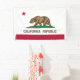 Ce dessin représente le drapeau de l'état américain de Californie, l'un des états les plus peuplés et riches du pays. Il est souvent connu sous le nom de drapeau de l'ours et il est basé sur un drapeau qui a été utilisé pour la première fois lors de la Révolution du drapeau de l'ours en 1846. Il contient une étoile rouge, une bande rouge au fond et un grizzli californien ; il porte aussi le texte "California Republic". La capitale de la Californie est Sacramento, tandis que la plus grande ville de l'état est Los Angeles. Les autres grandes villes de Californie sont San Diego, San Jose, San Francisco, Fresno, Long Beach, Oakland, Bakersfield et Anaheim. Un habitant de Californie est connu comme californien.