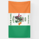 Montrez votre héritage irlandais avec cette bannière de 5ft x 3ft drapeau irlandais. Ajoutez votre nom de famille ou d'autres textes tels qu'un bar ou un club et votre propre emplacement ou autre texte. Le centre du drapeau a un design original avec un aigle américain, avec des shamrocks irlandais et les drapeaux d'Irlande et votre État. Il y a 3 options - Intérieur, Extérieur et Extérieur avec des murs en métal. (Supprimer le texte actuel pour laisser vide avec une seule crête centrale affichée)