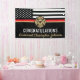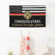 Cette conception comprend un drapeau de pompier avec des rayures noires et blanches, ainsi qu'une fine bande rouge. "Félicitations" et l'insigne d'un pompier se trouve au-dessus du nom du pompier, lieutenant ou chef qui est diplômé ou qui prend sa retraite. Fêtez dans le style !