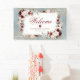 Moderne, tendance et absolument magnifique ! Cette bannière d'accueil mariage présente une armature florale d'aquarelle peinte à la main et des botaniques florales bordeaux, sur un arrière - plan d'aquarelle bleu poussiéreux. Le texte est tout dans une couleur bordeaux assortie. Fait partie d'une suite correspondante. Copyright Invitations élégants. Tous droits réservés.