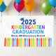 Cette jolie bannière de remise de diplômes de maternelle 2025 personnalisable présente un casquette cool au-dessus de l'écriture colorée et une rangée de crayons en arc-en-ciel. Cool maternelle diplômé signe en couleurs amusantes pour la dernière journée de l'école primaire avec votre nom d'école en bleu. Félicitations à nos jeunes diplômés !