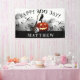 Cette bannière d'anniversaire d'Halloween éffrayante est parfaite pour une fête d'anniversaire d'Halloween. Cette banderole pour l'anniversaire d'Halloween présente un arrière - plan d'encre noire à rayures avec une lanterne de valet, un crâne humain, une corneille noire et un balai de sorcières. Le texte dit "Joyeux Boo Day." Personnalisez avec le nom de votre choix.
