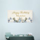 Bannière d'anniversaire "Joyeux anniversaire" aux couleurs bleu et blanc, roses et verdoyantes, élégante et poussiéreuse. Personnalisé avec le nom de l'invité d'honneur. Contactez-moi pour obtenir de l'aide sur vos personnalisations ou pour demander des produits Zazzle correspondants ou coordonnés supplémentaires pour votre groupe.