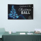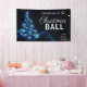 Cette bannière de bienvenue chic et élégante pour Noël est le signe de bienvenue festif parfait pour encourager vos invités à célébrer la fête. Un arrière - plan noir formel met en valeur un bel arbre de Noël éclairé avec une belle étoile bleue au-dessus de l'arbre et des étoiles bleues brillantes et des ampoules de Noël brillantes décorant les branches. Personnalisez ce signe de Noël avec votre nom et le nom de votre événement.