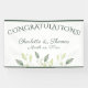 Cette Bannière de Félicitations Mariage Elégante est conçue avec des Feuilles floral Aquarelle doux. Le texte comprend les prénoms de la mariée et de la mariée et la date du Mariage, avec des FÉLICITATIONS en gras! Pour personnaliser, insérez simplement votre texte dans notre modèle facile en remplaçant les noms et la date des exemples. Assurez-vous de voir le Faire-part de mariage et les Accessoires correspondants.Profitez!