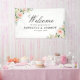aquarelle peinte à la main de fleurs rose vif avec un script élégant et du texte. Les couleurs et autres caractéristiques de cette bannière peuvent être personnalisées.