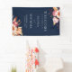 Banderole de bienvenue mariage de couleur bleu marine aux accents floraux chics boho de fleurs dahlia et feuilles botaniques d'automne. Simple à personnaliser avec les détails de votre mariage pour accueillir vos invités dans une élégante typographie minimaliste.