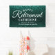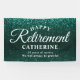 Modern Happy Retirement Nom personnalisé Bannière avec parties scintillant turquoise festive brillamment confetti Illustrations. Personnalisez avec votre nom et 1 ou 2 lignes de texte personnalisé. C'est le turquoise en version noire.