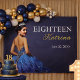 Designed with rich blue tones, soft gold lettering, and a glamorous portrait-style layout, this banner creates a refined focal point for an 18th birthday, debut, or milestone event. It is ideal for daughters, teens, or young women celebrating their eighteenth birthday in a way that feels meaningful and stylish.