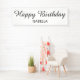 Bannière élégante et élégante blanche avec script gris "Joyeux anniversaire" Personnalisée avec le nom de l'invité d'honneur. Commandez à l'intérieur ou à l'extérieur. Faites votre sélection sur la page produit.