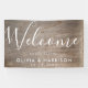 Élégant Script Rustic Mariage Affiche de bienvenue bannière. Bienvenue à votre famille et à vos amis avec ce simple modèle de signalisation mariage de style ferme. Personnalisez ce panneau mariage élégant et élégant avec les noms et la date.