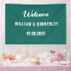 Bannière Mariage moderne, élégante, vert émeraude. Parfait pour les jeunes mariés. Vous pouvez le personnaliser avec le nom et la date de la mariée et du marié.