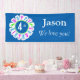 Un design simple mais attrayant qui présente le texte circulaire "Joyeux anniversaire" en rose et bleu autour d'un numéro d'âge. La couleur et l'âge de l'arrière - plan peuvent être modifiés selon votre choix à l'aide du modèle fourni. Cherchez ID527 pour voir d'autres produits avec ce design, y compris des serviettes en papier, des assiettes et plus.
