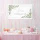 Créez la bannière mariage parfaite avec ce design floral à la mode eucalyptus botanique et sauge vert aquarelle avec le script artisanal 'bienvenue'. Parfait pour les mariages de jardin et de jardin. Fait partie d'une collection correspondante. Voir la collection complète ici : https://www.zazzle.com/collections/eucalyptus_botanical_sage_green_script_wedding-119437527356989510 Copyright Invitations élégants, tous droits réservés.