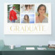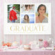 Simple Script Multi Photo Graduation Banner contient quatre de vos photos préférées de votre diplôme d'études supérieures ou secondaires sur le devant avec l'élégant script de calligraphie or moderne "Graduate" superposition. Idéal pour un Graduation Party Simple, élégant et classe. Créé par ©Evco Studio www.zazzle.com/store/evcostudio