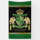 Créez votre propre armoiries, emblème, insignia ou crête de famille aristocratique avec ce magnifique essuie-tout classique ou ce modèle de bouclier. Les motifs vert foncé ornent un bouclier surmonté d'une couronne dorée et flanqué d'aigles héraldiques médiévaux. Une banderole assortie tient votre date de mariage / date de naissance / slogan ou cri de bataille personnalisé. L'écran a de l'espace pour vos initiales monographiques. La bannière inférieure porte votre nom de famille. Il y a aussi de l'espace ci-dessous pour votre citation, devise ou message préféré. Remplacez l'exemple de texte par le vôtre pour un cadeau personnalisé. Une conception sans distinction de sexe qui conviendra aux familles, aux groupes, aux couples ou aux particuliers. Fait un cadeau merveilleux pour les Mariages, Anniversaires, Anniversaires, Anniversaires, Retraite, Promotion, Fête des Pères, Bachelor Party, Wedding shower, Graduation, Journée Internationale de l’Heraldique, Fêtes médiévales ou de Imaginaire et autres occasions spéciales.