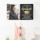 Ajoutez une touche personnalisée aux décorations de la fête de fin d'études supérieures ou secondaires avec cette photo personnalisée en noir, or et blanc bannière. Le design comprend un arrière - plan en acier inoxydable brossé noir, une planche de mortier à l'apparence de feuille d'or, une typographie moderne stylisée, une calligraphie manuscrite de style, et une photo du diplômé, comme une image ou une photo de haut niveau de la cérémonie de début. Veuillez noter que l'or est imprimé en couleur et non en métal. Ce signe de fête est une façon élégante de célébrer la journée spéciale. Félicitations au diplômé !