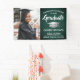 Ajoutez une touche élégante et personnalisée aux décorations de la fête de fin d'études supérieures ou secondaires avec cette bannière personnalisée en vert, blanc et argent. Le design comprend un arrière - plan vert foncé, une casquette de graduation en acier inoxydable faux brossé, une typographie moderne stylisée, une calligraphie manuscrite de script, et une photo du diplômé, comme une photo de haut niveau ou une image de la cérémonie de début. Veuillez noter que l'argent est de couleur grise imprimée, pas de feuille métallique. Ce signe de fête est une façon élégante de célébrer la journée spéciale. Félicitations au diplômé !