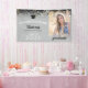 Personnalisez cette bannière de la classe moderne de 2021 avec la photo, le nom, l'école et l'année du diplômé. L'arrière - plan propose des stars de confettis d'argent et d'or amusantes et festives à travers le sommet. Le texte apparaît en blanc et noir sur un arrière - plan gris argenté.