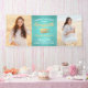 Ajoutez une touche personnalisée aux décorations de la fête de fin d'études supérieures ou secondaires pour elle avec cette photo personnalisée 2 bannière turquoise bleue, or et blanche. Le design comprend un arrière - plan en acier inoxydable brossé, un panneau de mortier en feuille d'or, une typographie moderne et élégante, une calligraphie manuscrite de style, et deux photos du diplômé, telles que des images de haut niveau ou des images de la cérémonie de début. Veuillez noter que l'or est imprimé en couleur et non en métal. Ce signe de fête est une façon élégante de célébrer la journée spéciale. Félicitations au diplômé !