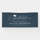 Félicitations à l'obtention du diplôme simple moderne élégant script faire-part design bannière. La couleur bleu marine peut être customisée.