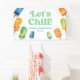 Voici une bannière de fête d'anniversaire Let's Chill Blue Retro Popsicle!