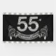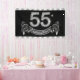 Bannière d'anniversaire de 55 ans avec de beaux chiffres diamants argentés et une jolie bannière argent et noir sur un fond noir et argent. Vous pouvez changer la couleur du fond, modifier la taille de la bannière et ajouter du texte pour personnaliser cette superbe bannière d'anniversaire de 55 ans ! Il s'agit d'une conception imprimée sans vrais diamants, argent, paillettes, etc.