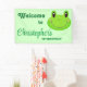 La fête des enfants de grenouilles fournit Banderole de bienvenue aux crapauds vert mignon. C'est un objet de fête d'anniversaire drôle et mignon inspiré par les grenouilles. Cet objet de fête d'anniversaire est parfait pour une fête à thème de grenouille. Cliquez sur personnaliser pour commencer à customiser le vôtre !