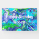 Bleu et vert tourbillonne marbre abstrait art moderne amusant fête d'anniversaire personnalisée bannière de fête.