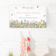 Célébrez et accueillez vos invités de la fête de mariage avec cette bannière de bienvenue estivale et moderne aux fleurs sauvages. Elle présente un champ aux couleurs vives de fleurs sauvages délicates avec des papillons, des bourdons et des coccinelles. Personnalisez tout le texte et l'emplacement des graphiques selon vos besoins.