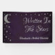 Fête de mariage écrite dans les étoiles. Lune argentée et étoiles sur fond violet minuit foncé