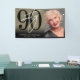 Célébrez quatre-vingt-dix ans avec style grâce à cette bannière de fête moderne et audacieuse, parfaite pour une célébration d'anniversaire marquant un jalon. Le design sur le côté gauche présente un grand « 90 » noir avec un « Ninety » blanc écrit à la main superposé dessus pour un look élégant et contemporain.