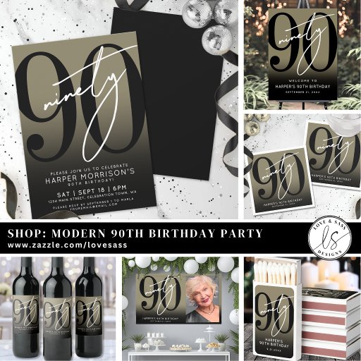 Simple Ninety Elegant Gold 90th Birthday PartyConçu par JJ Marie