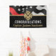 Cette conception comprend un drapeau de pompier avec des rayures noires et blanches, ainsi qu'une fine bande rouge. "Félicitations" et l'insigne d'un pompier se trouve au-dessus du nom du pompier, lieutenant ou chef qui est diplômé ou qui prend sa retraite. Fêtez dans le style !