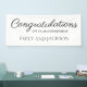 Blanc avec une élégante soirée de fiançailles en écriture noire "Félicitations à votre fiançailles" bannière personnalisée avec les noms de la mariée et du marié.