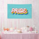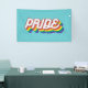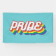 Ce dessin présente le mot fierté dans une police colorée style arc-en-ciel des années 70.