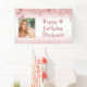 Célébrez n'importe quel anniversaire avec cette bannière girly avec parties scintillant et étoiles en or faux rose et personnalisées avec votre message personnalisé dans une police de caractères manuscrite changeable et une photo. MODIFICATIONS : Modifiez le style, la couleur, la taille, l'espacement et le placement de la police de texte dans EDIT. OPTIONS : L'échantillon est présenté dans une taille de 3 x 5 pieds—d'autres tailles sont disponibles sur la page de commande ou la conception peut être transférée à une affiche, une planche en mousse, une tapisserie ou un autre produit, ou convertie par le concepteur à un fichier de téléchargement numérique pour l'impression locale. ASSISTANCE : Pour obtenir de l'aide sur la modification ou la personnalisation de la conception, le changement de couleur, le redimensionnement, le transfert de la conception à un autre produit ou si vous souhaitez coordonner des éléments, contactez le concepteur AVANT de commander par Zazzle Conversation ou par courriel makeitaboutyoustore@gmail.com.