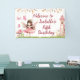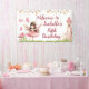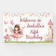 Fairy Tale Dream Birthday Banner : Faites de l'anniversaire de votre enfant un conte de fées se réaliser avec notre Bannière enchanteresse. Le design présente un charmant chapelet d'étoiles, des champignons avec une grenouille, et une jolie fée avec une baguette magique, le tout dressé contre un arrière - plan rose clair doux avec un lointain château. Personnalisez le nom et l'âge. La bannière fait partie d'une collection. Donnez vie à la magie - achetez le vôtre aujourd'hui!