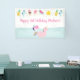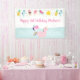 Cette mignonne bannière d'anniversaire présente d'adorables illustrations d'été colorées avec des accents de fausse feuille d'or.