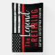 This design features a firemens flag with black and white stripes, and a thin red line stripe as well. "The Legend is Retiring" text sits above the name of the retiring firefighter, lieutenant, or chief. Celebrate in style!