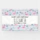 Bannière d'anniversaire avec un motif avec une ambiance estivale amusante. Flamants roses et ananas posés sur un motif rayé bleu clair avec feuilles et coeurs tout autour.