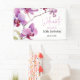 Elégante branche d'orchidée violette aquarelle dans une bannière d'anniversaire blanche en toile de fond. Personnalisation facile pour le nom, l'âge et les détails de l'événement selon vos besoins.