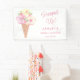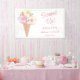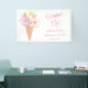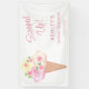 Cette bannière de fête de fiançailles sur le thème de la glace est décorée de fleurs aquarelles et d'un cône de glace.