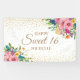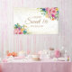 Elégante couleur rose, jaune et bleu aquarelle florale sur blanc Sweet 16 anniversaire bannière avec parties scintillant or. Personnalisé avec le nom de l'invité d'honneur. Belles couleurs printemps et été.