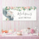 Coordonnez votre baby shower avec cette bannière de bienvenue aux baby showers d'éléphants à fleurs roses et chic. Doté d'un joli petit éléphant dormant et de feuilles d'eucalyptus rustiques aquarellés ornés de jolies roses blanches et roses blanches en ivoire et rose. Personnalisez-le avec vos propres mots facilement et rapidement, appuyez simplement sur le bouton customiser pour réorganiser et formater le style et le placement du texte. Consultez les articles correspondants pour cette collection disponibles en magasin! c) Le Happy Cat Studio