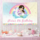 Sympa sirène et Rainbow Unicorn Pool Party Welcome Backdrop Sign, avec une jolie sirène, mignonne monocoque floatie et un ciel arc-en-ciel fantaisiste. Personnalisez cette toile de fond avec votre propre libellé facilement et rapidement, appuyez simplement sur le bouton customiser pour réorganiser et formater le style et le placement du texte. Design exclusif (c) Le Happy Cat Studio.
